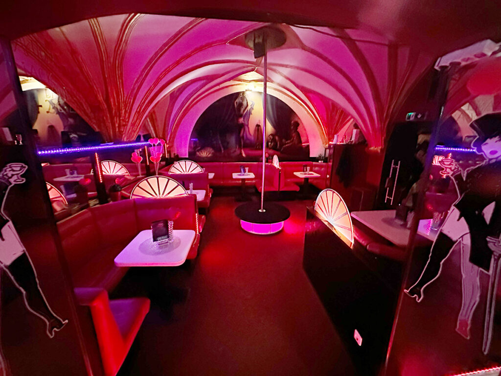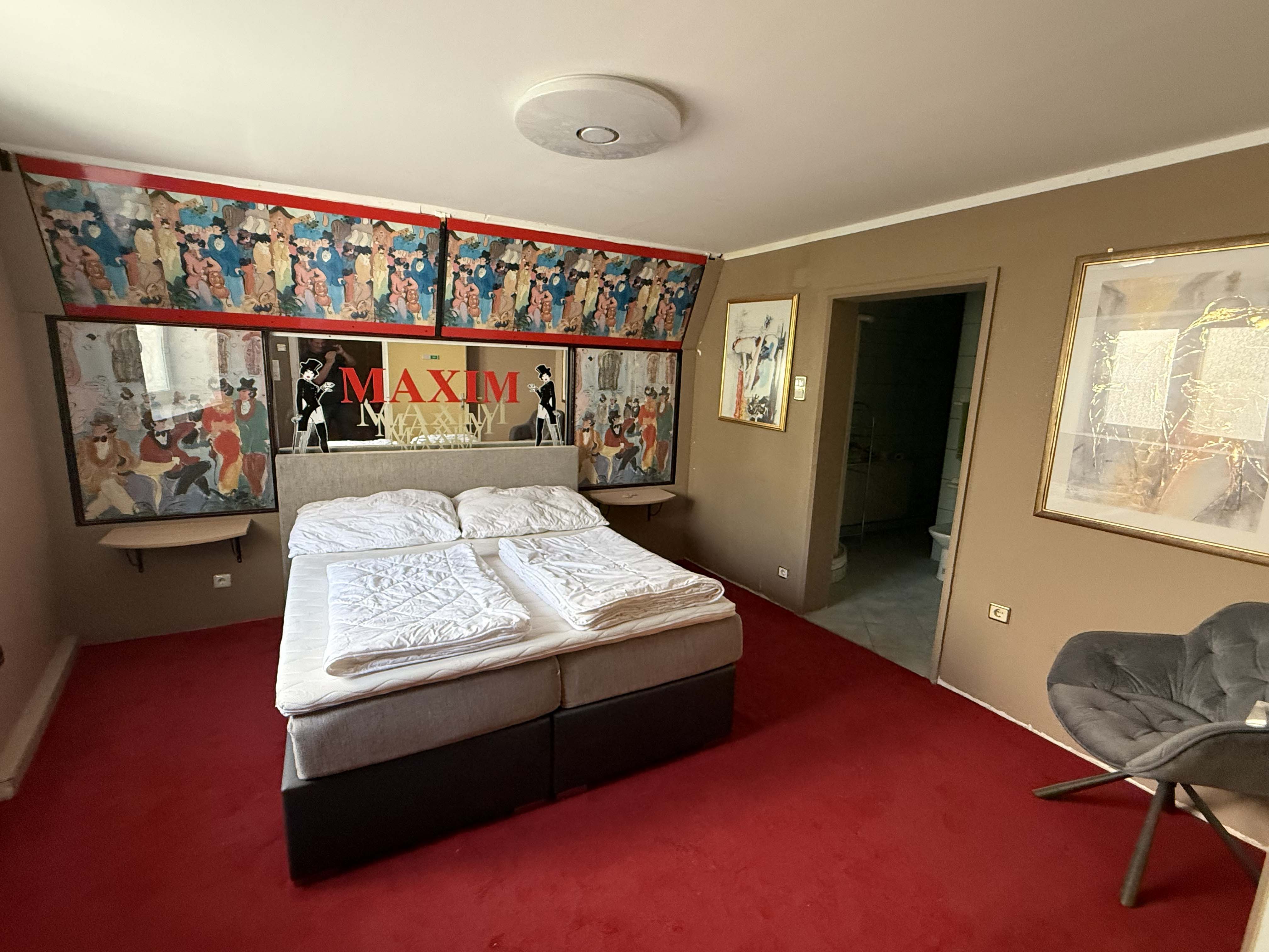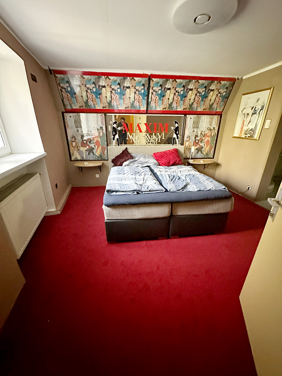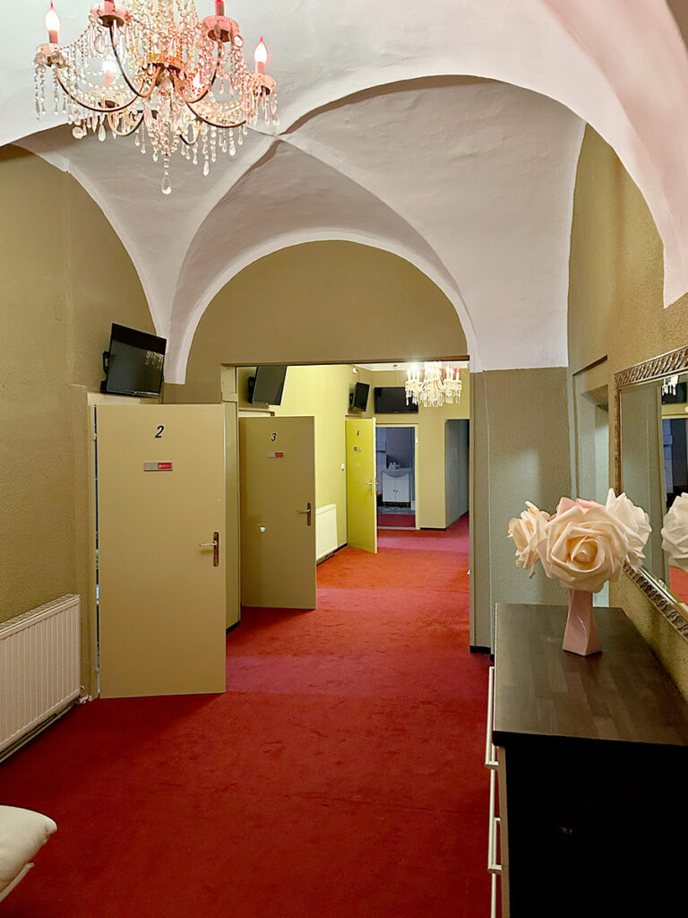 Das Anwesen verfügt über elf individuell gestaltete Zimmer, viele davon mit Dusche, Waschbecken und Whirlpool, sowie einen geräumigen und optisch beeindruckenden Barbereich mit einer voll ausgestatteten Theke, einer Bühnenstange und einer imposanten Gewölbedecke. Zusätzliche Räumlichkeiten umfassen Nebenräume, Lagerflächen, private Rückzugsorte, zwei Loftwohnungen und eine weitläufiges Gewölbe. Dadurch bietet das Gebäude Produktionsteams eine vielseitige Auswahl an Szenen und Nebenräumen an einem Ort.