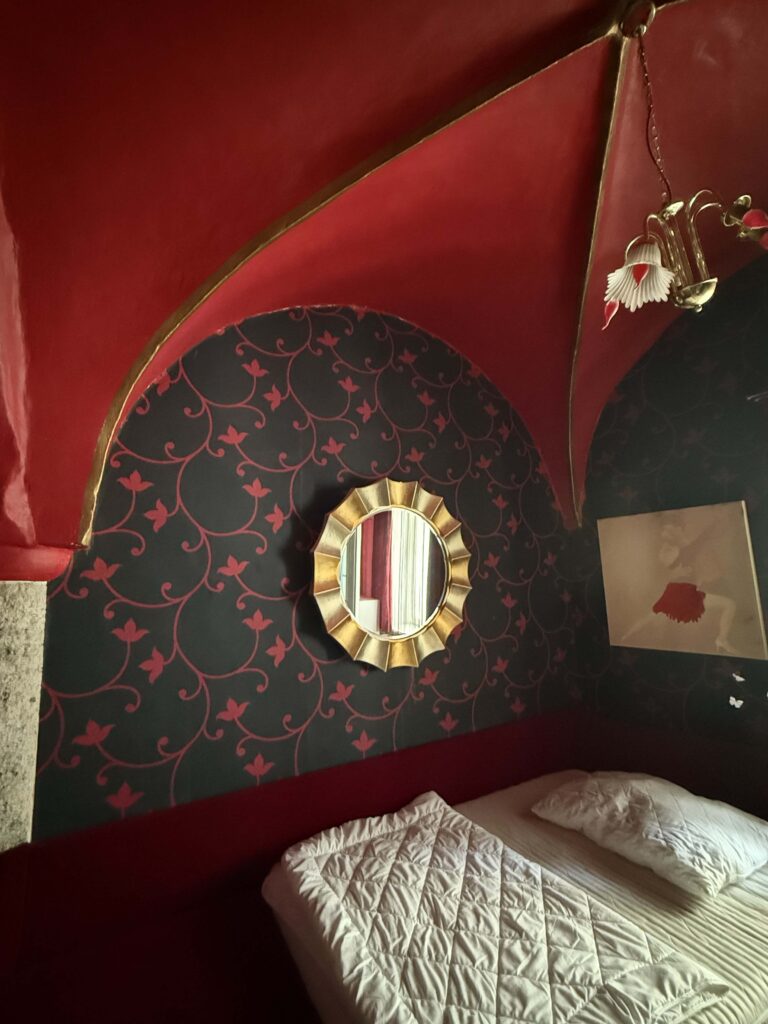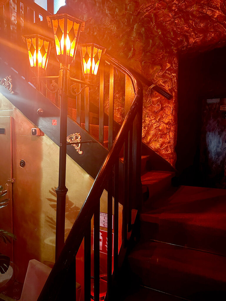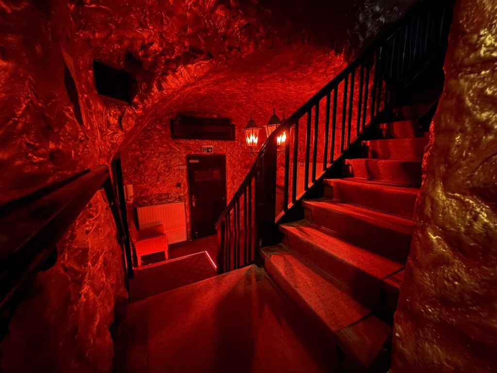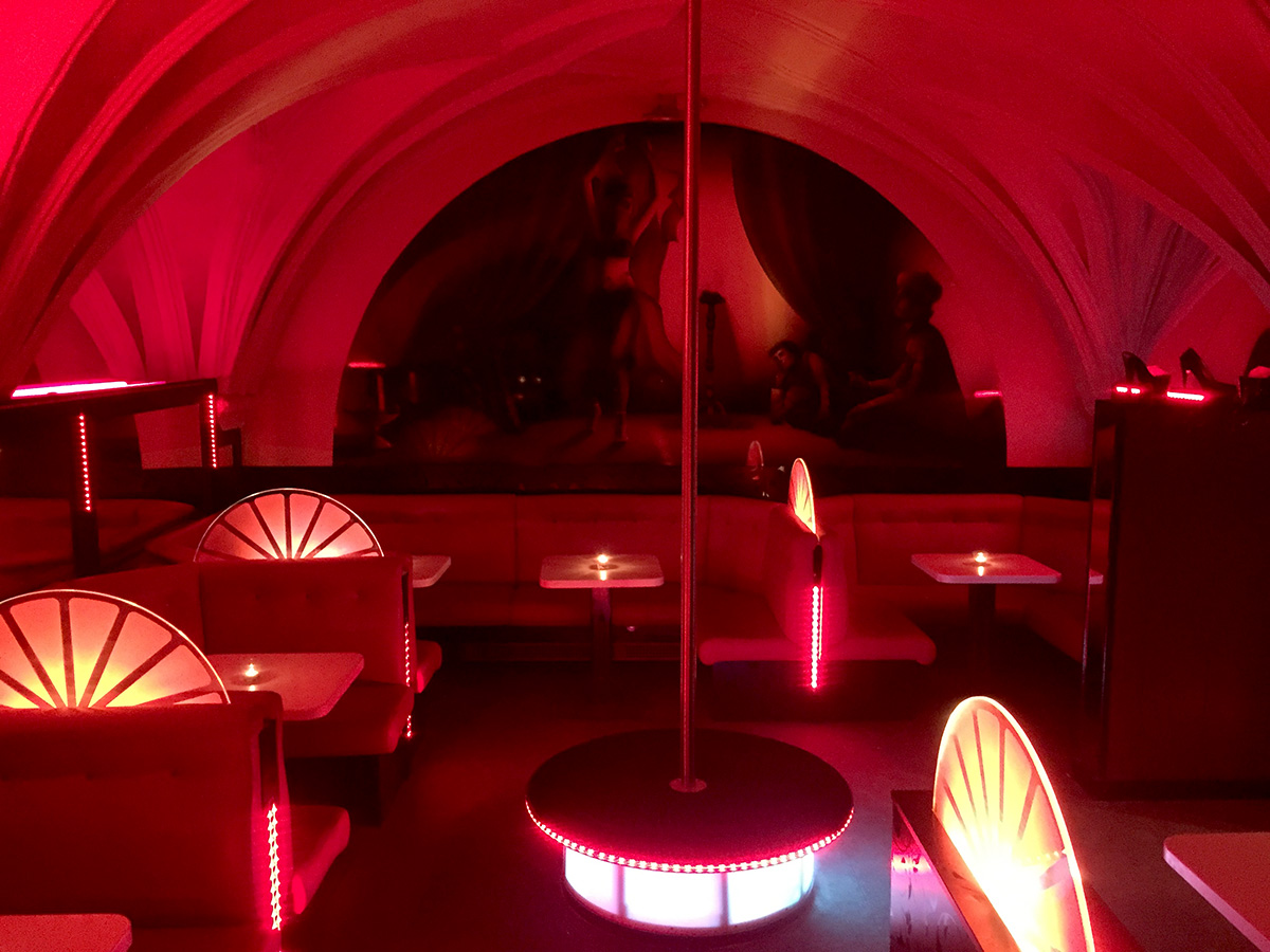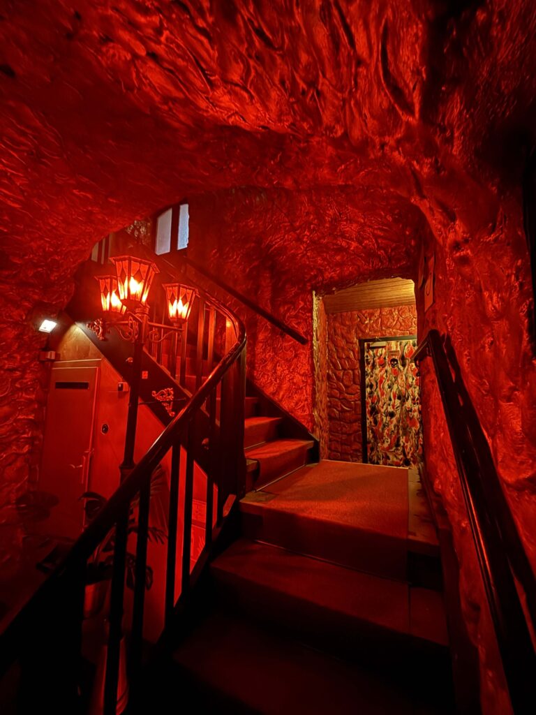 Das Anwesen verfügt über elf individuell gestaltete Zimmer, viele davon mit Dusche, Waschbecken und Whirlpool, sowie einen geräumigen und optisch beeindruckenden Barbereich mit einer voll ausgestatteten Theke, einer Bühnenstange und einer imposanten Gewölbedecke. Zusätzliche Räumlichkeiten umfassen Nebenräume, Lagerflächen, private Rückzugsorte, zwei Loftwohnungen und eine weitläufiges Gewölbe. Dadurch bietet das Gebäude Produktionsteams eine vielseitige Auswahl an Szenen und Nebenräumen an einem Ort.
