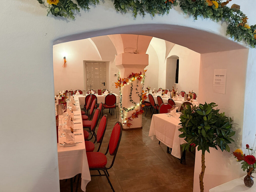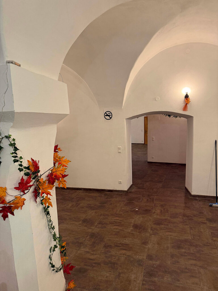 - Architektur: Historisches Gebäude mit Kreuzgewölben und Tonnengewölbe